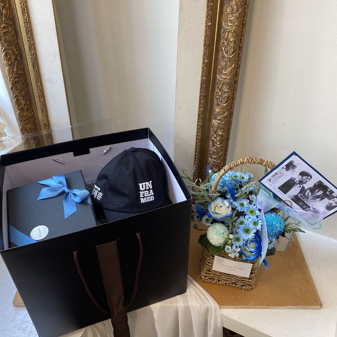 Lee Je-hoon (theme xanh): nón, áo, giỏ hoa, message book, cookies