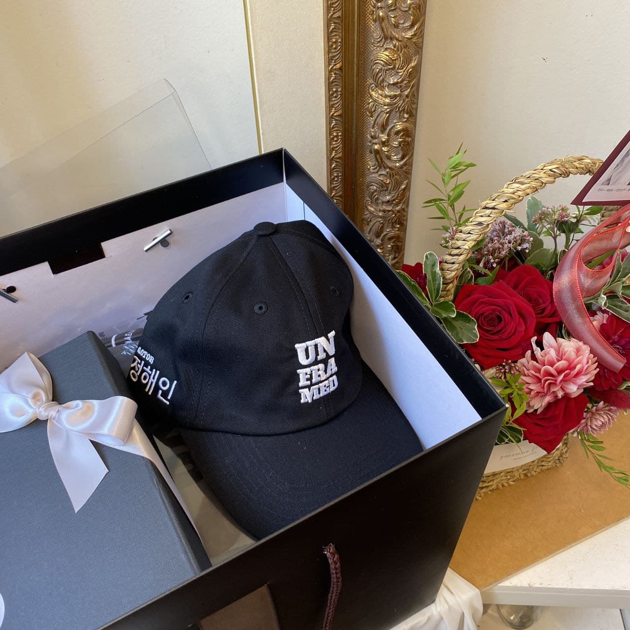 Jung Hae-in (theme đỏ): nón, áo, giỏ hoa, message book, cookies