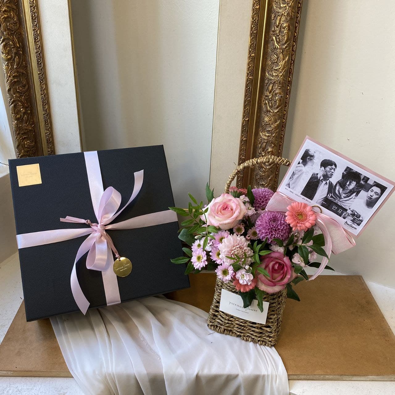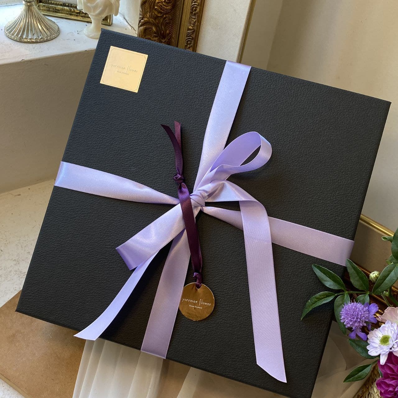 - Hoa đã chọn màu cùng với hộp quà.